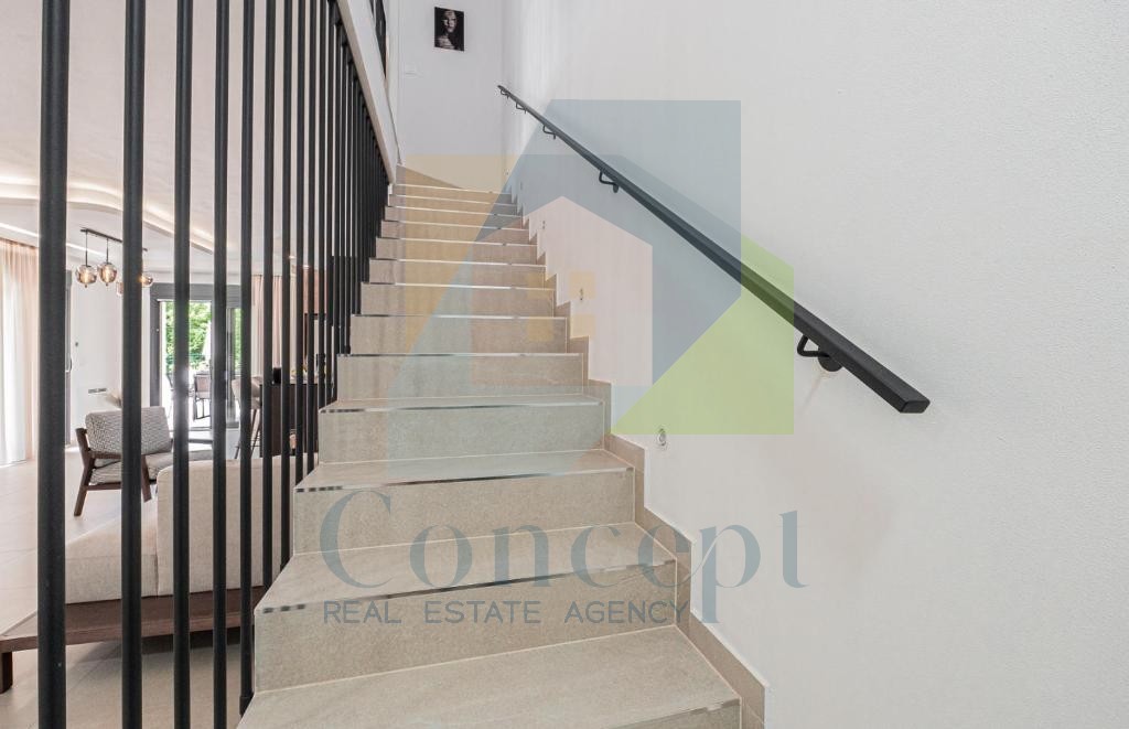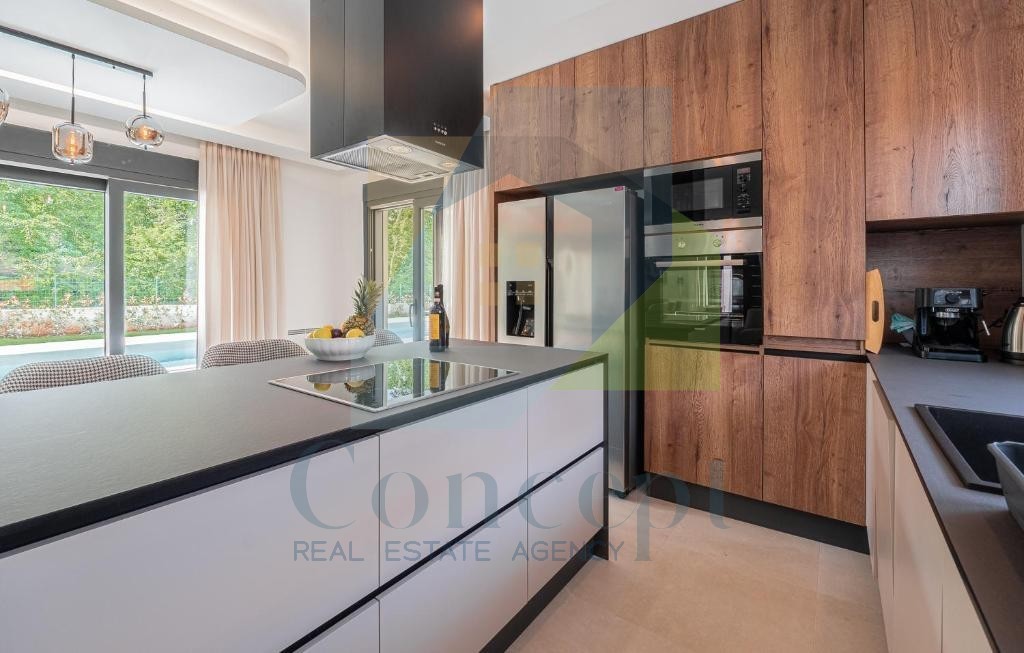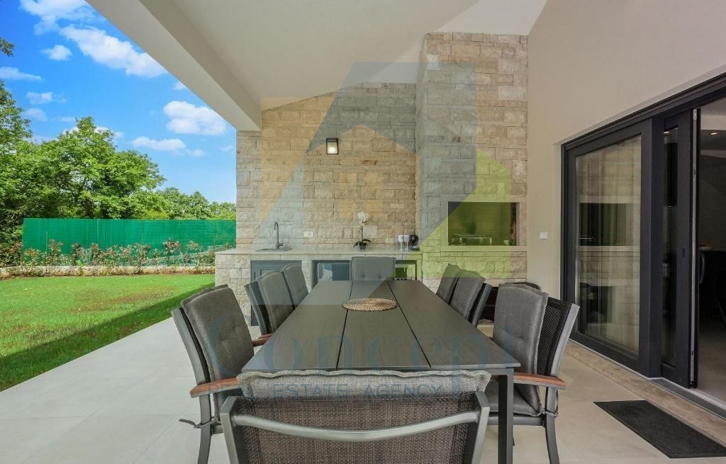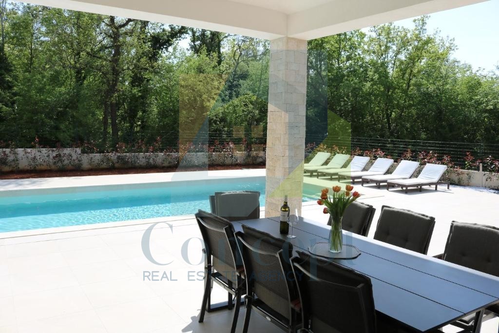 Na prodej je luxusní vila s bazénem, situovaná na ideálním místě, pouhé 2 km od moře a Poreče. Vila se rozkládá na dvou podlažích s celkovou plochou 218 m² a nachází se na pozemku o rozloze 830 m². Tato moderní nemovitost nabízí dokonalou kombinaci luxusu, soukromí a praktičnosti, je obklopena přírodou a zároveň blízko všech zařízení.