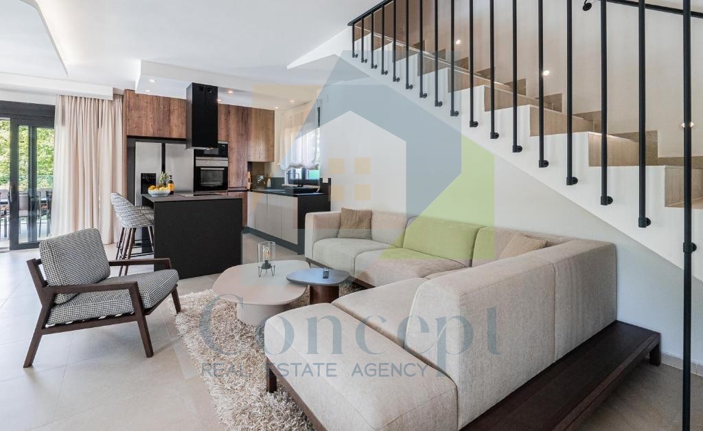 Vila je vybavena systémem chytré domácnosti, podlahovým vytápěním pomocí tepelného čerpadla vzduch-voda a fan-coil jednotkami ve všech místnostech, což zajišťuje příjemnou teplotu po celý rok. Solární panely na střeše dále přispívají k energetické účinnosti. Celý pozemek je oplocen a vila má tři parkovací místa, což zajišťuje soukromí a bezpečnost.