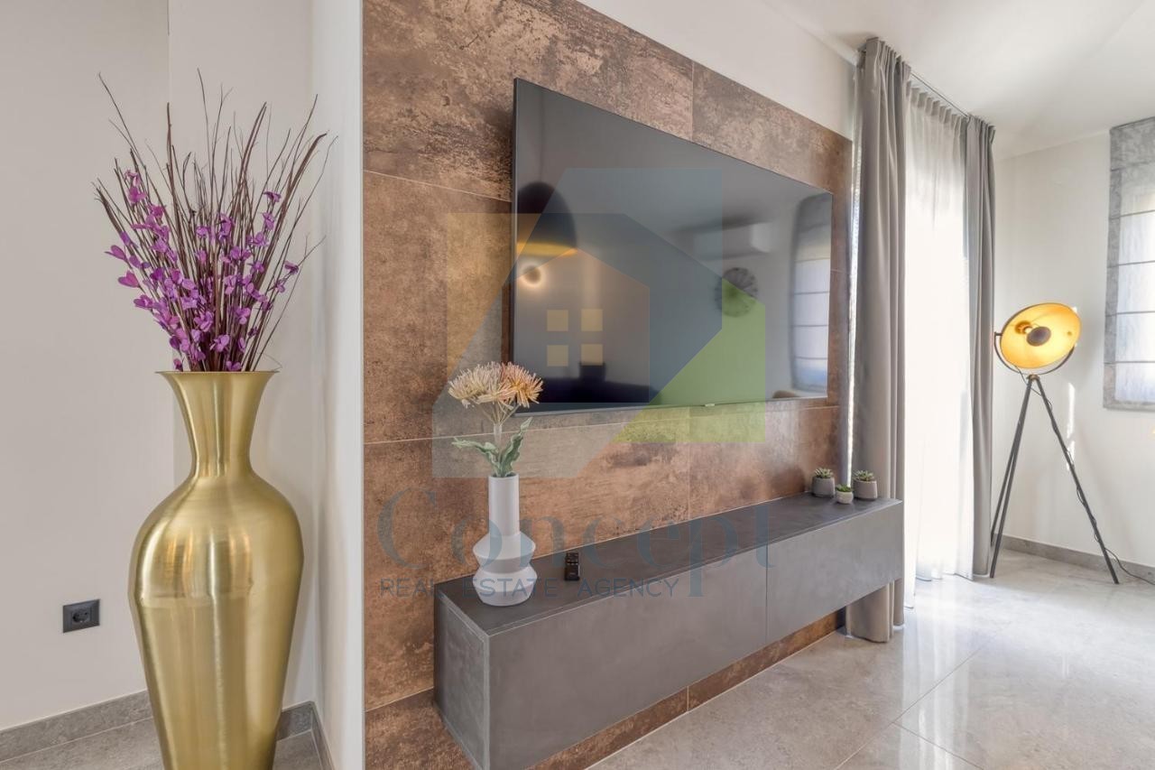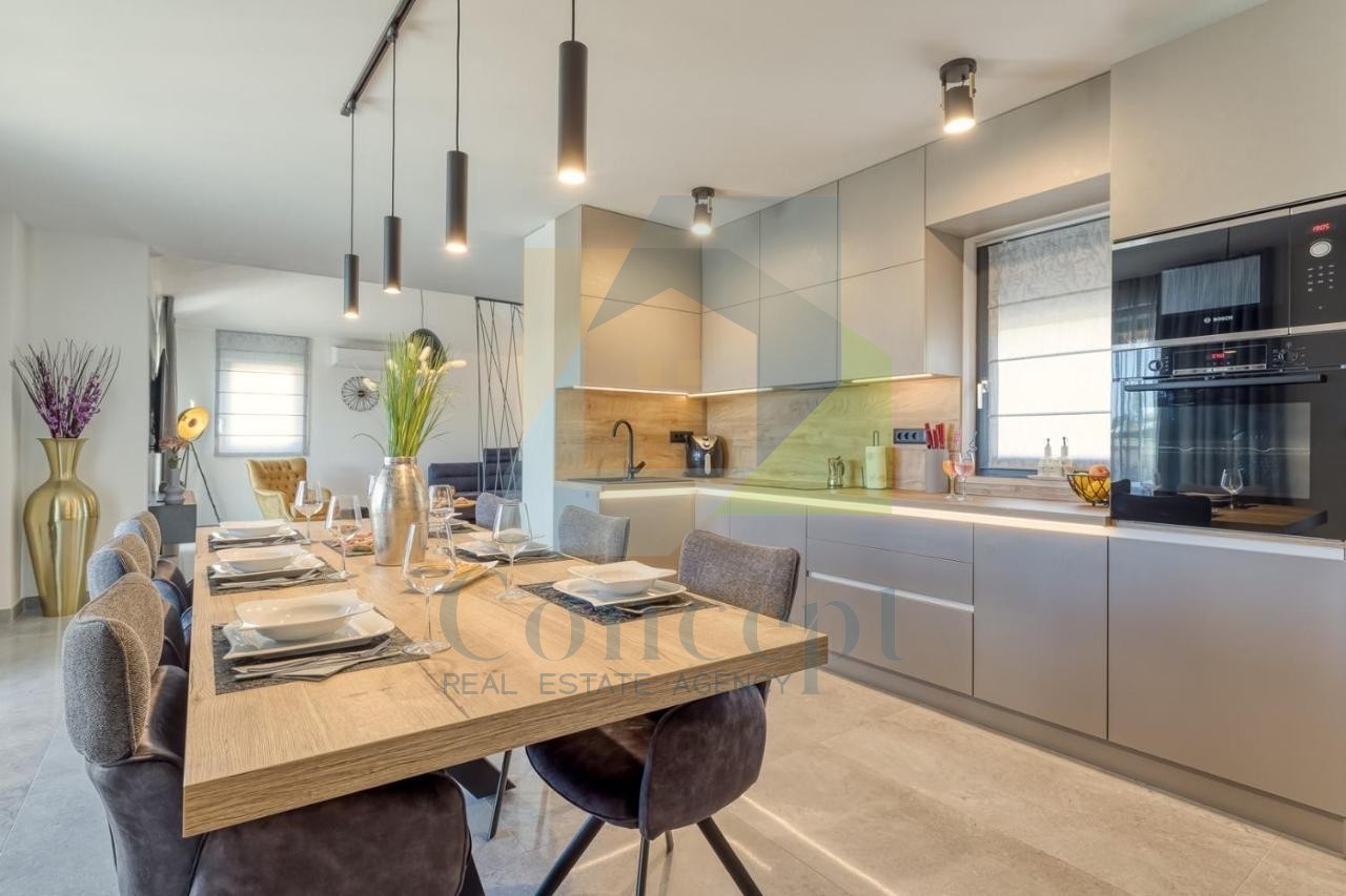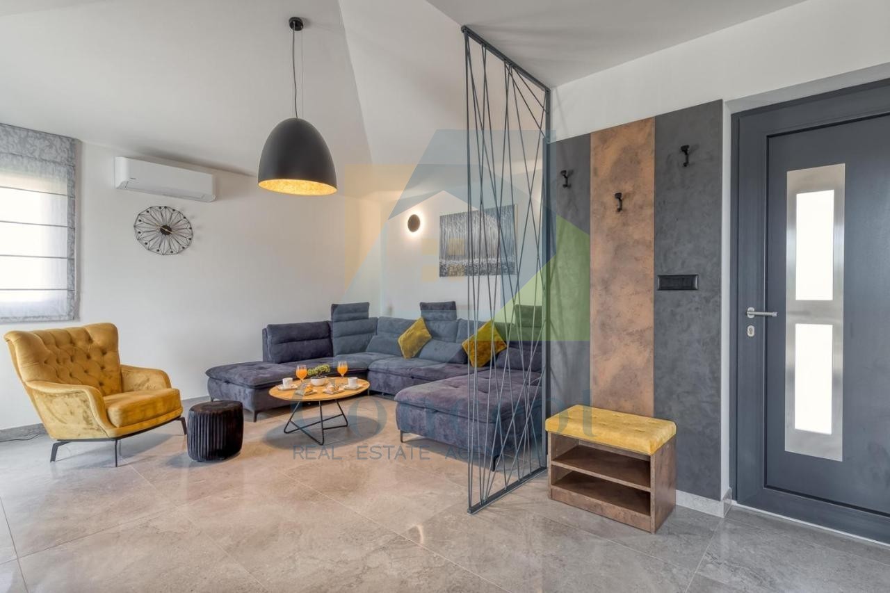 Tato moderní vila se rozkládá na 120 m² obytné plochy a nachází se na pozemku o rozloze 773 m², což představuje vynikající příležitost pro klidný život nebo dovolenou v blízkosti všech potřebných služeb.