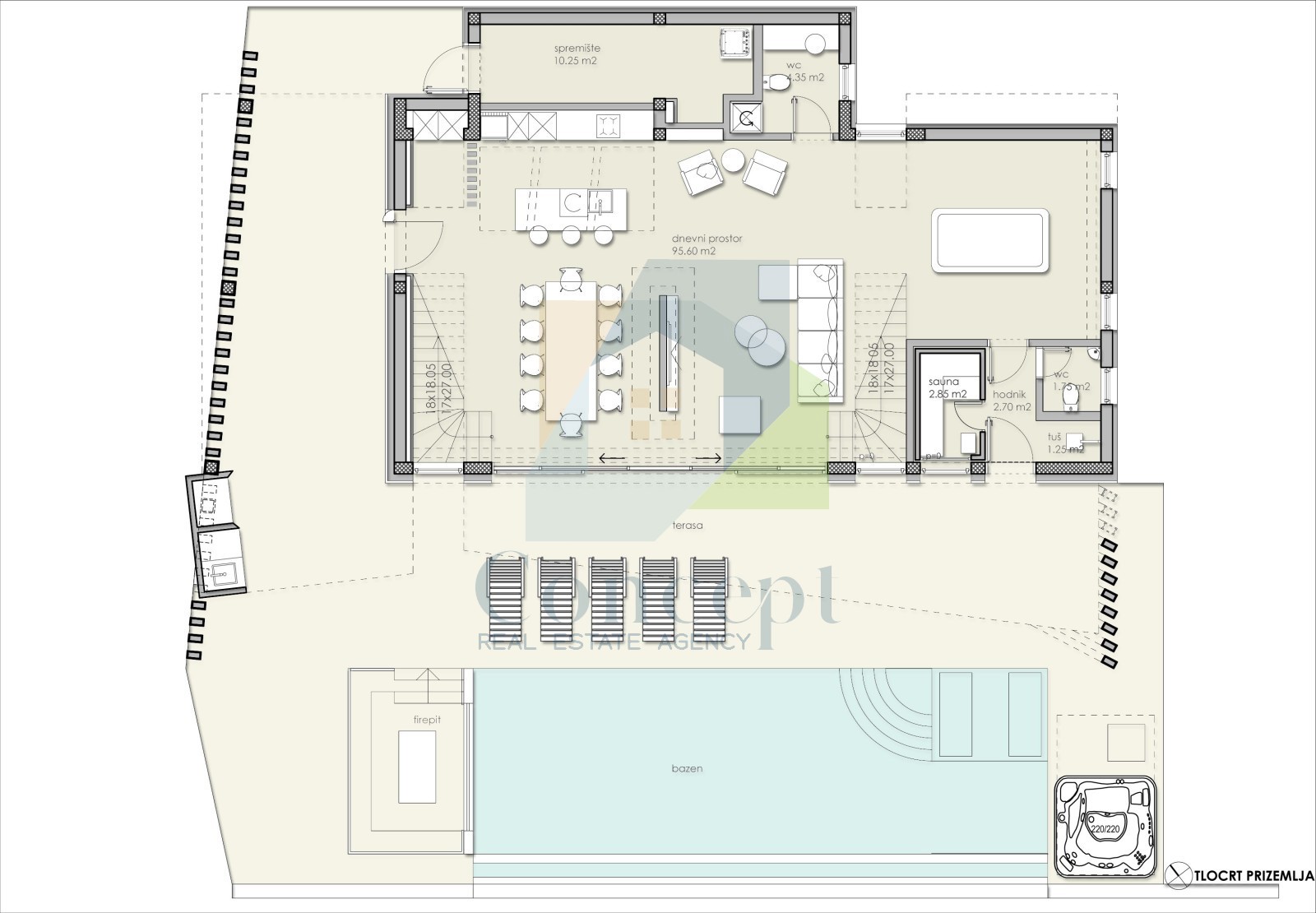 Vážení kupující, přístup k nemovitosti je možný pouze s podepsaným protokolem o prohlídce, který je základem pro další kroky související s koupí a pro výpočet provize v souladu se Zákonem o zprostředkování obchodu s nemovitostmi. Jako autorizovaný zprostředkovatel nemovitostí si CONCEPT d.o.o. účtuje kupujícímu zprostředkovatelský poplatek ve výši 3 % + DPH z dohodnuté kupní ceny za zprostředkovatelské služby při uzavírání předběžné smlouvy nebo kupní smlouvy.