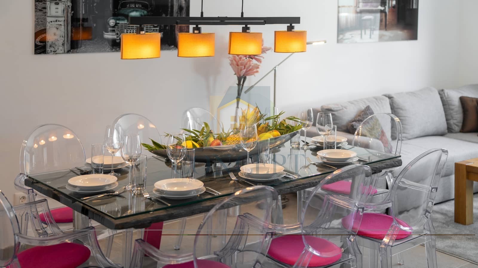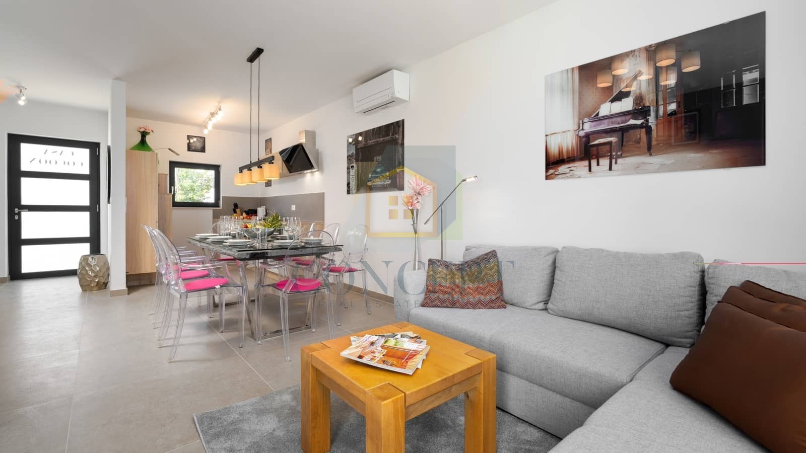 Zum Haus gehört ein privater Parkplatz, ein Außenpool mit einer Fläche von 15 m² sowie ein ruhiger Garten, der vollständige Privatsphäre bietet. Die Terrasse mit Sitzgruppe und der Liegebereich am Pool sind perfekt, um die warmen Sommertage zu genießen. Das Haus ist mit Klimaanlagen ausgestattet.