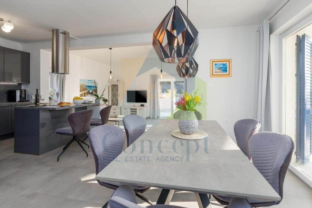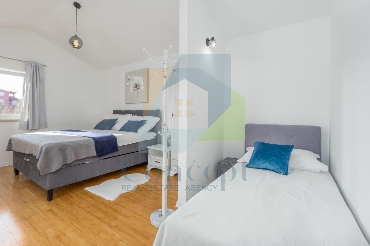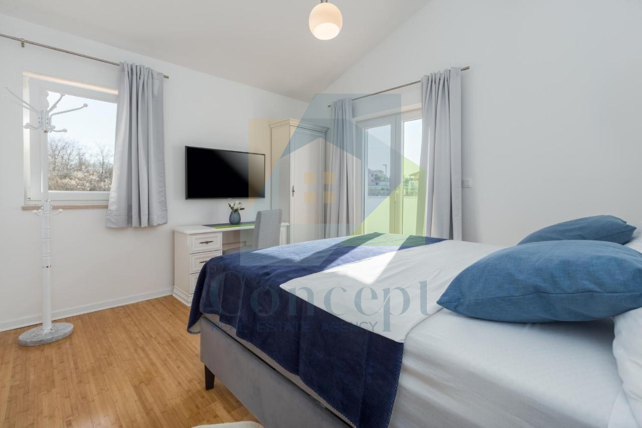 In einer kleinen Stadt in der Nähe von Poreč befindet sich eine Steinvilla mit einer Fläche von 141 m². Sie besteht aus Erdgeschoss und Obergeschoss und ist in einem gepflegten Garten mit einer Fläche von 628 m² gelegen.
