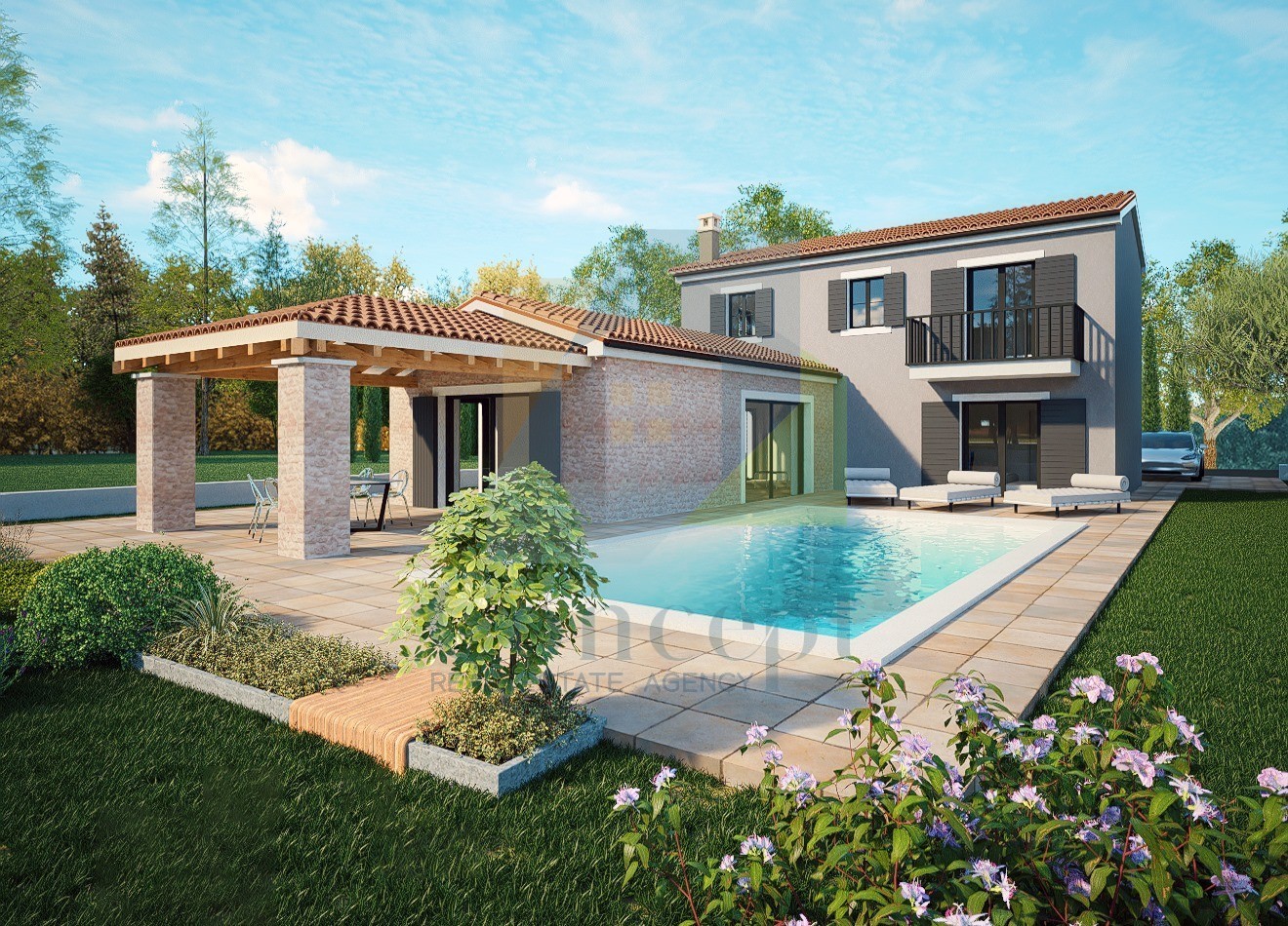 Poreč, Umgebung, Wunderschönes Haus mit Pool und Meerblick, 8 km vom Meer entfernt