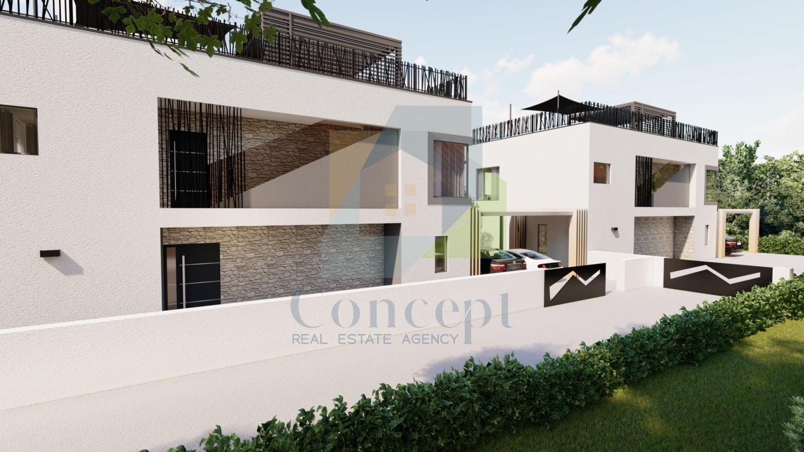 We are selling three luxurious villas located in an exceptional location, just 400 meters from the sea and 2 kilometers from the city center. Each villa is situated on a plot of approximately 500 m², with a total area of 189 m² distributed across the ground floor, first floor, and rooftop terrace.