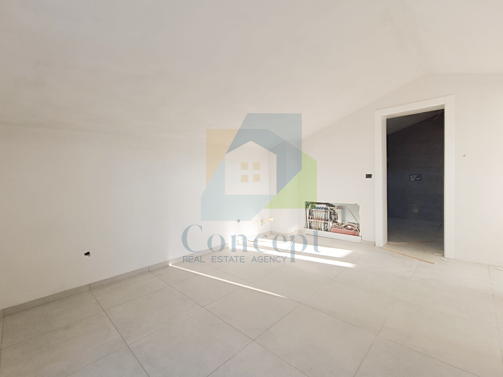 For sale is a two-story apartment with an area of 76.49 m², located on the first floor and the attic of the building. The first floor of the apartment features a living room with a kitchen and dining area, one bedroom, and a toilet. In the attic is the second part of the apartment, which includes a gallery space, two bedrooms, and a spacious bathroom. The gallery space leads out to a large terrace of 30.94 m², offering a beautiful view of the sea.