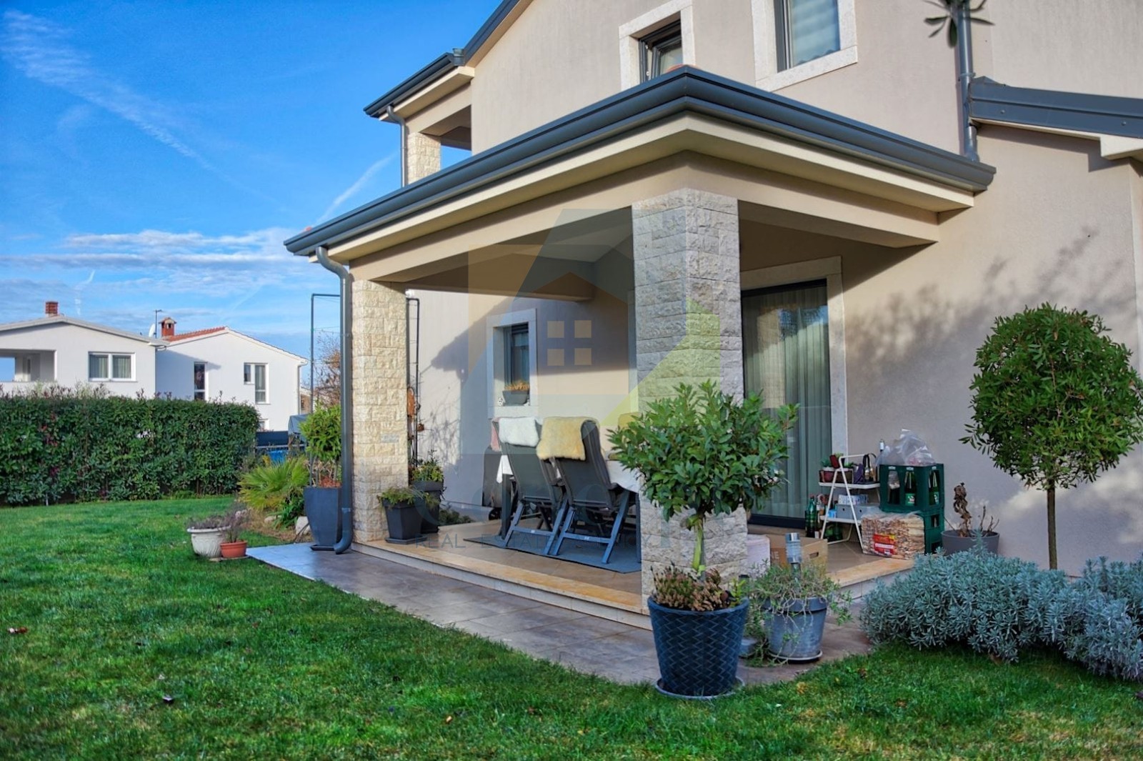 For sale is a beautifully furnished semi-detached house located just 4 km from the sea and beaches and about 5 km from the town of Poreč.