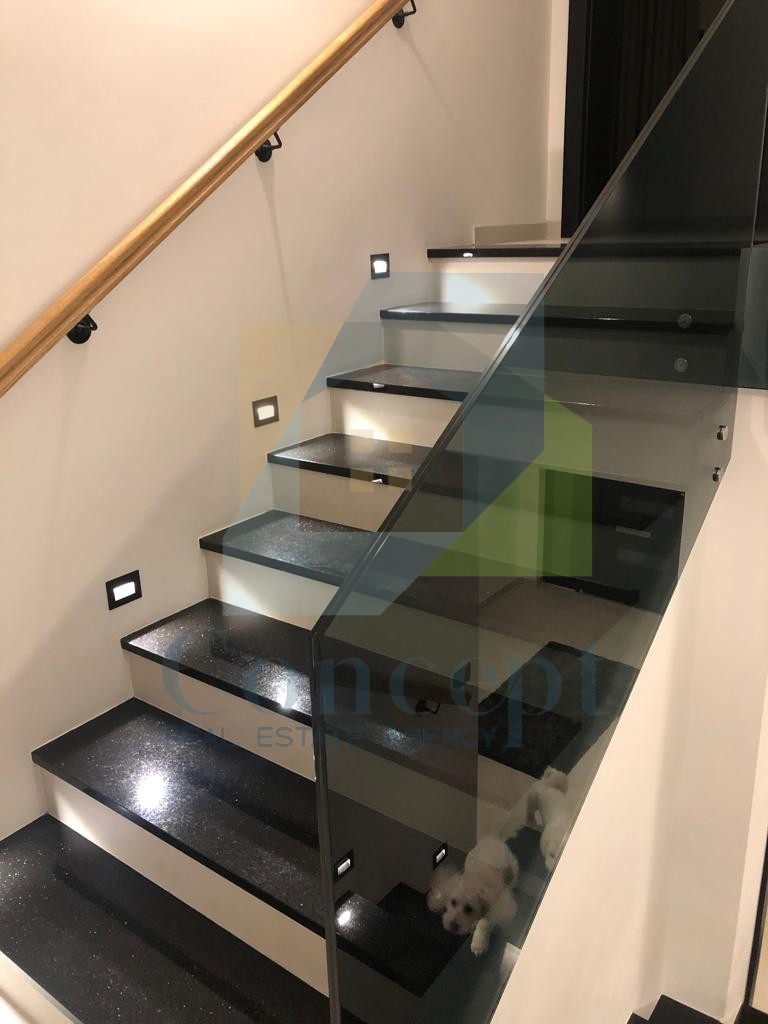 On the first floor, there are two bedrooms, each with its own bathroom and terrace. Heating and cooling are provided by air conditioning units in all rooms.