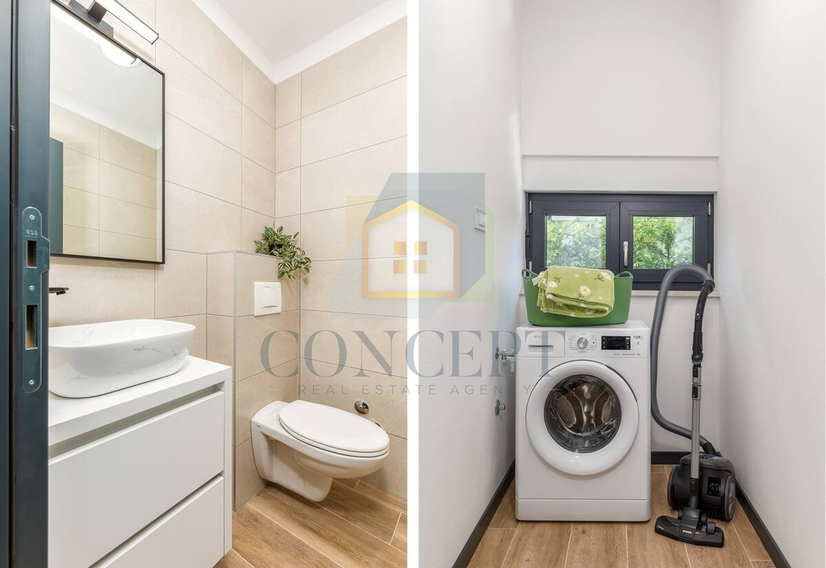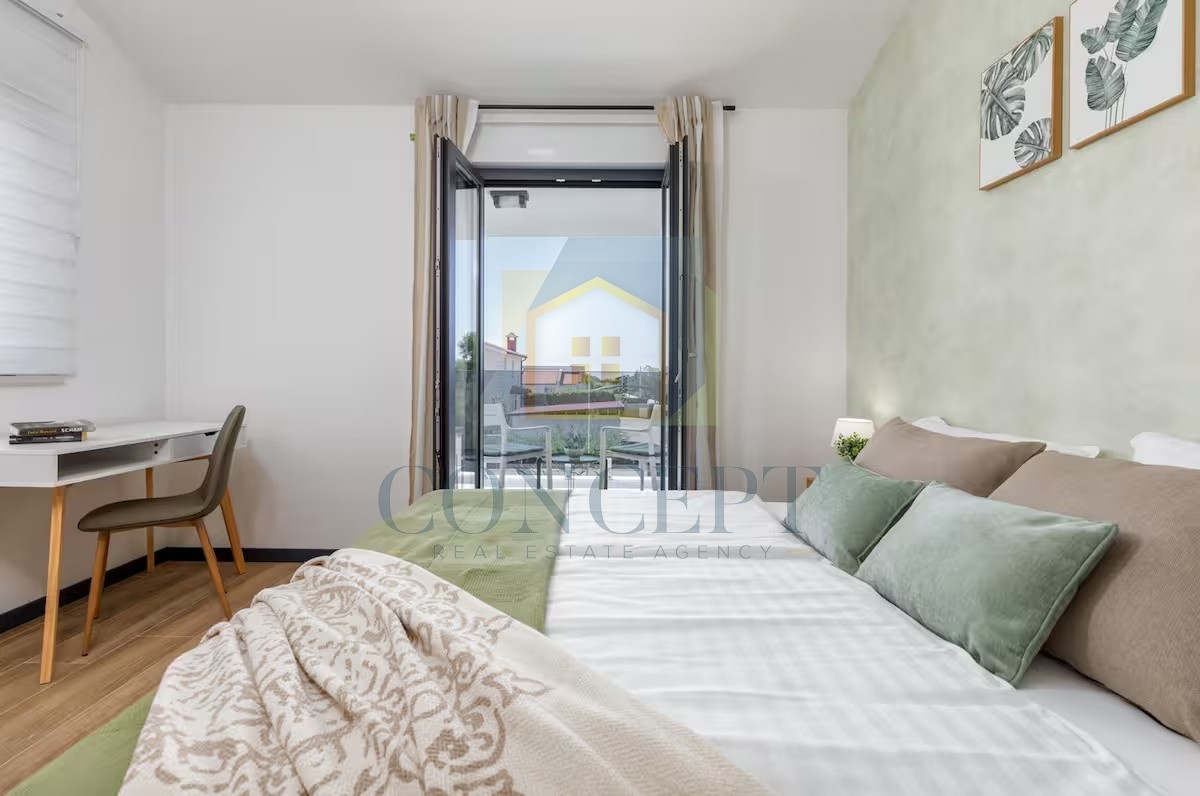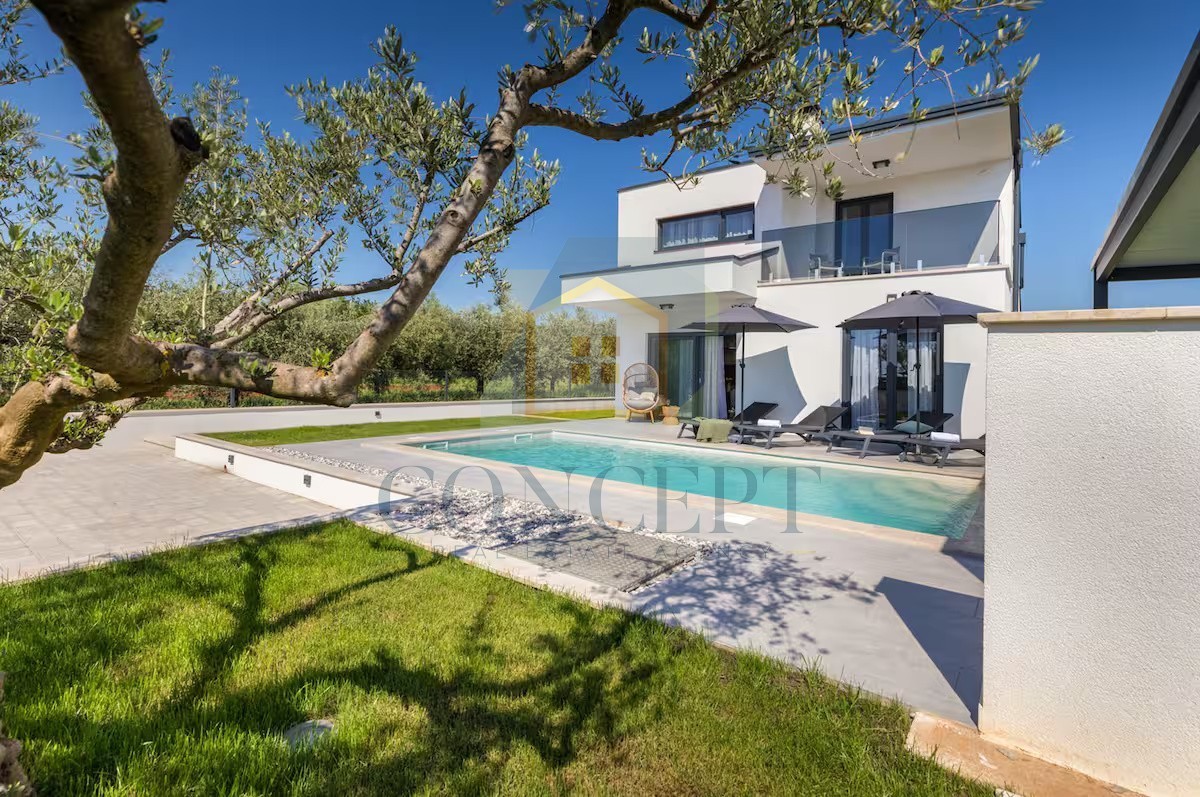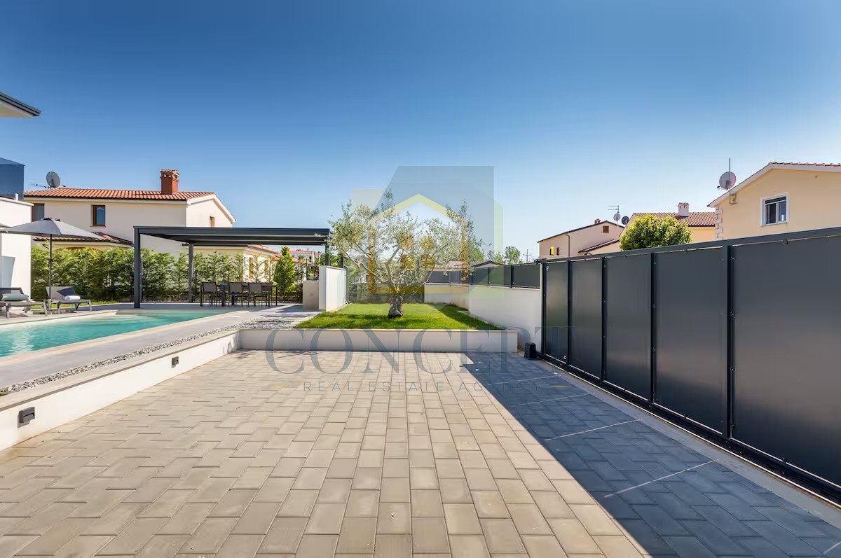 In a peaceful location, 5 km from the sea and Poreč, a modern detached house with an area of 139.30 m² is for sale on a plot of 521 m². The house spans two floors and offers a functional layout for everyday living or tourist rental.