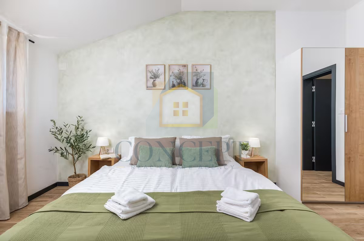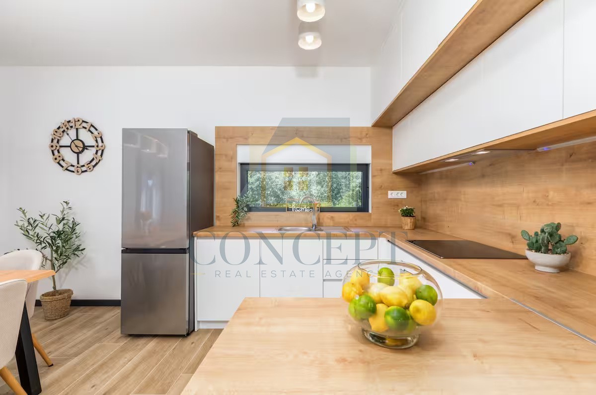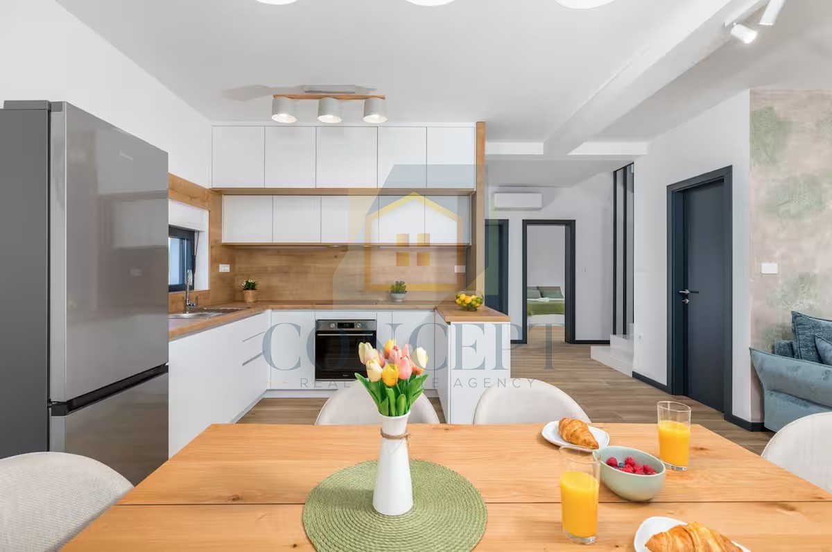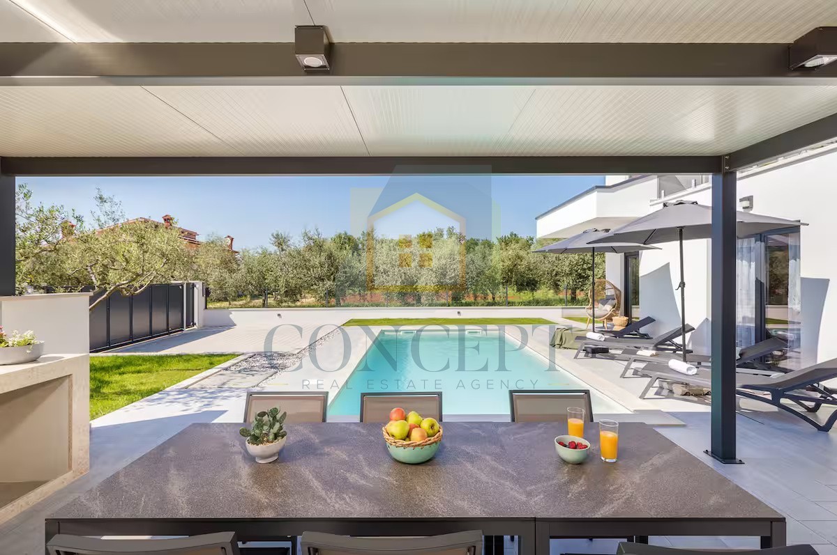 In a peaceful location, 5 km from the sea and Poreč, a modern detached house with an area of 139.30 m² is for sale on a plot of 521 m². The house spans two floors and offers a functional layout for everyday living or tourist rental.
