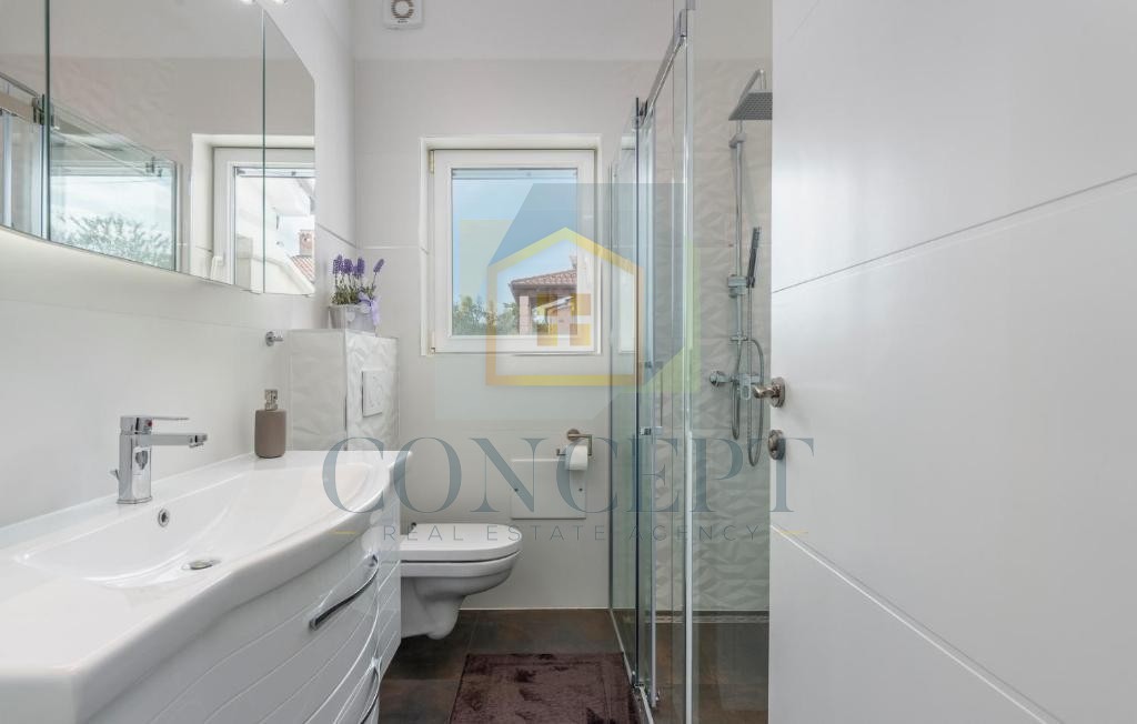 Na prodaju je moderna prizemna vila smještena u mirnom naselju svega 7 kilometara od Poreča. Nekretnina se nalazi na uređenom zemljištu površine 500 m², a ukupna stambena površina iznosi 156 m². Vila je izgrađena 2000. godine, a potpuno renovirana 2019., čime je postignut suvremen izgled i visoka razina udobnosti.