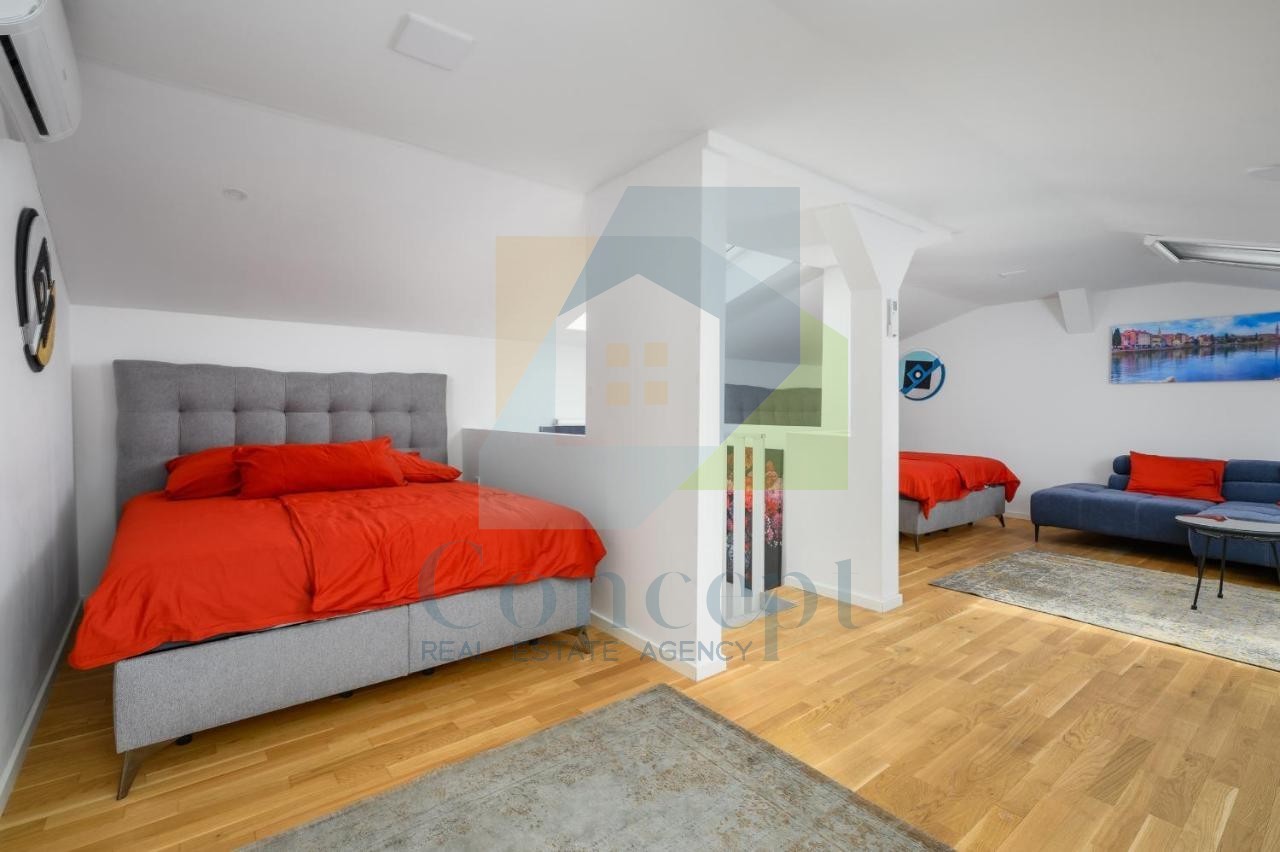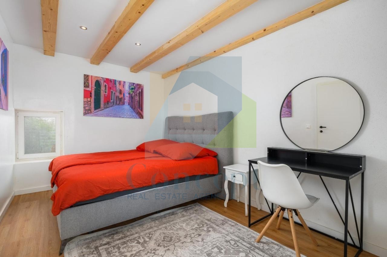 Svega 3 km od Poreča i prvih plaža smještena je ova moderno renovirana istarska kuća s okućnicom. Kuća se prostire na 140 m² kroz tri etaže, dok okućnica od približno 60 m² uključuje bazen, sunčalište i manju ostavu.