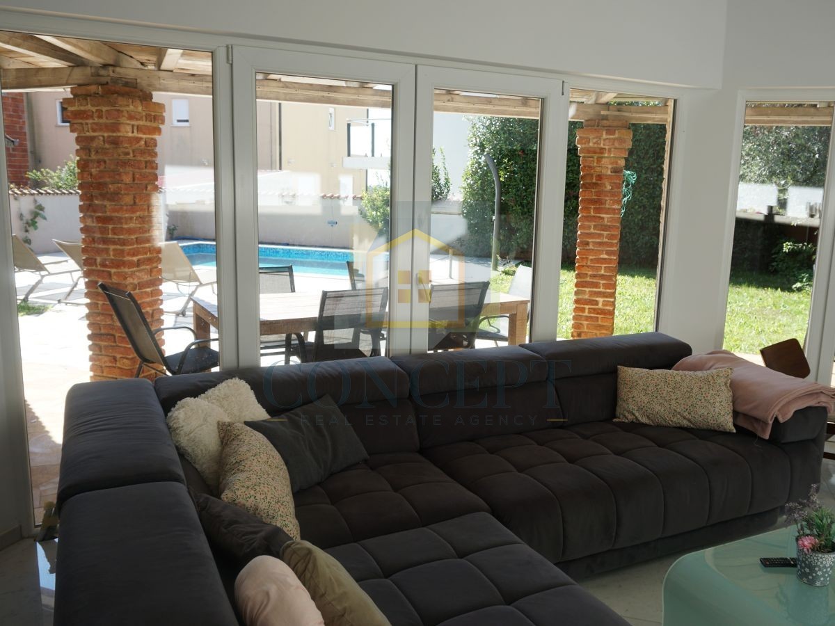 Uređeni vrt s bazenom i više prostora za opuštanje upotpunjuje ovu nekretninu.