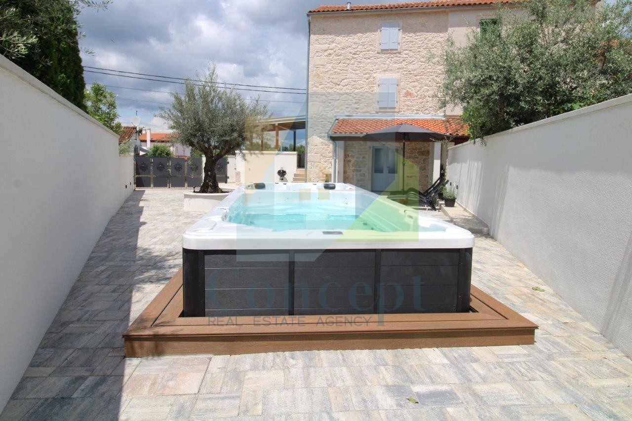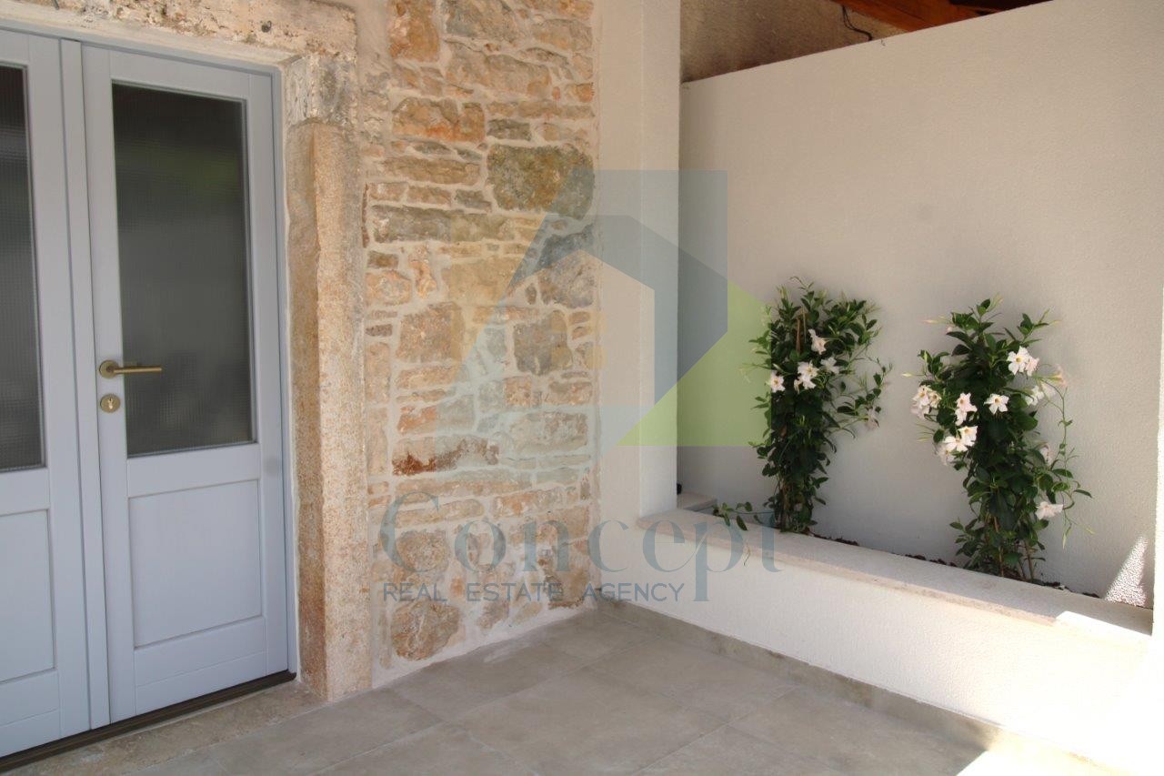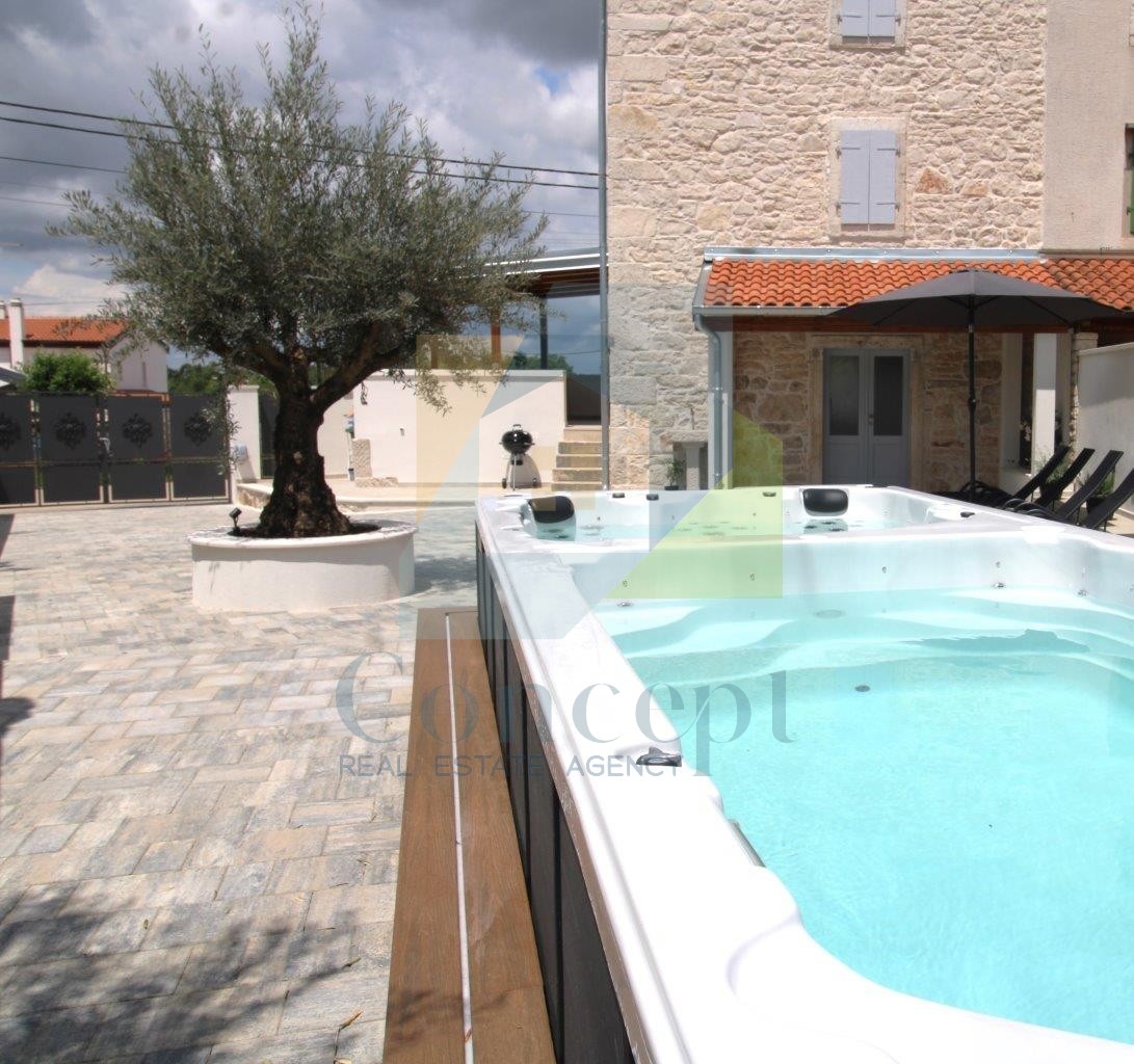 In vendita una casa in pietra completamente ristrutturata nei dintorni di Poreč, a circa 10 km dal centro città e 9 km dal mare. Si trova in una posizione tranquilla, ultima in fila, con un giardino di 200 m².