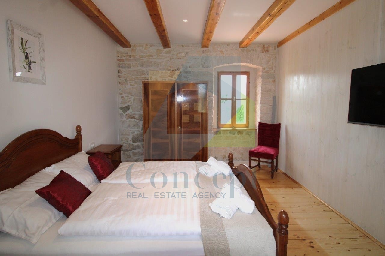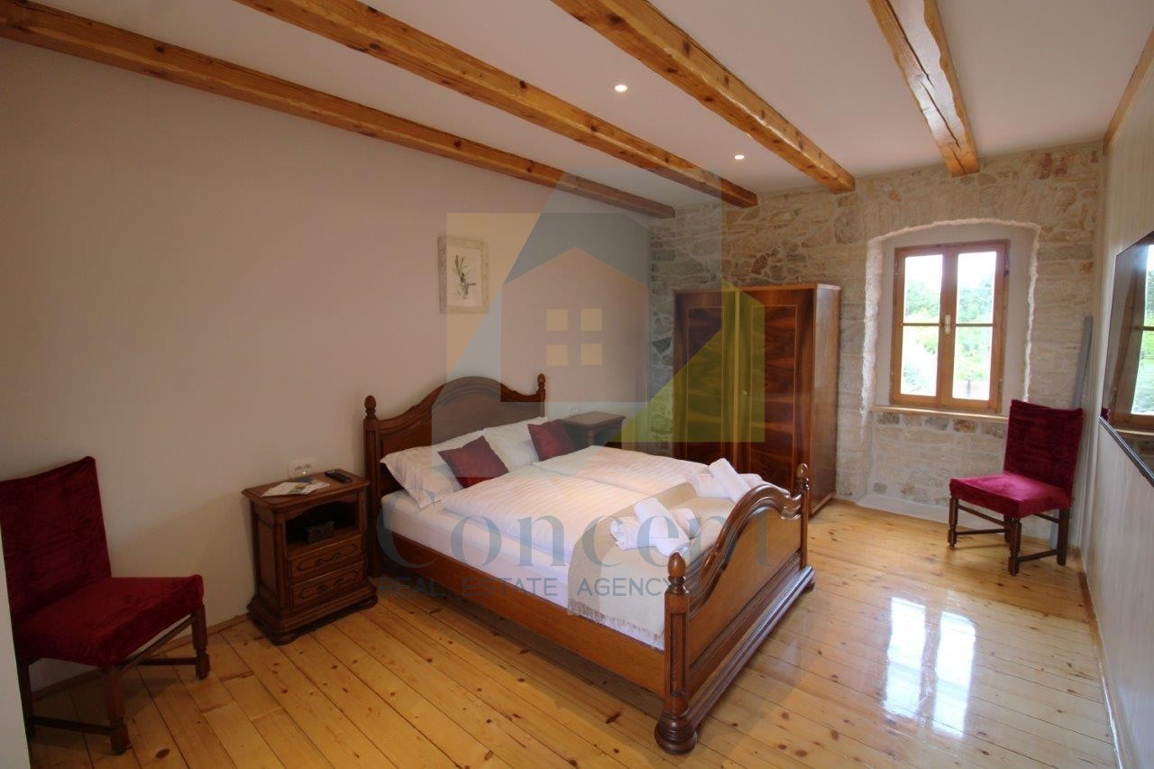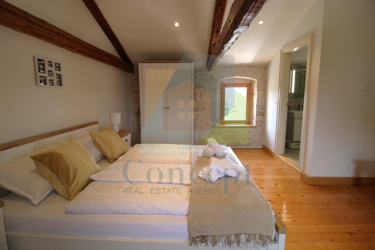 In vendita una casa in pietra completamente ristrutturata nei dintorni di Poreč, a circa 10 km dal centro città e 9 km dal mare. Si trova in una posizione tranquilla, ultima in fila, con un giardino di 200 m².