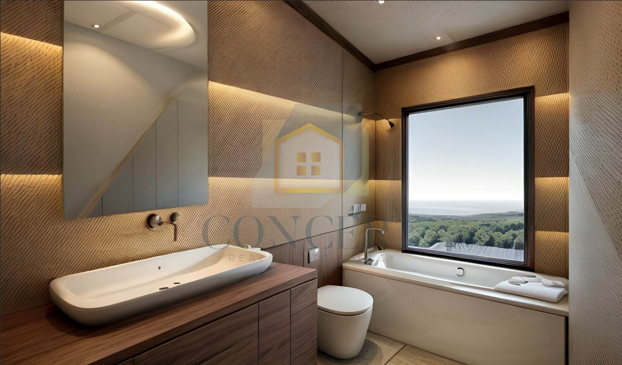 Il giardino include una piscina a sfioro e posti auto. È prevista la possibilità di installare il riscaldamento a pavimento secondo le preferenze dell'acquirente. In questa fase di costruzione, l'acquirente potrà partecipare alla scelta dei materiali e personalizzare i dettagli finali in base alle proprie esigenze.