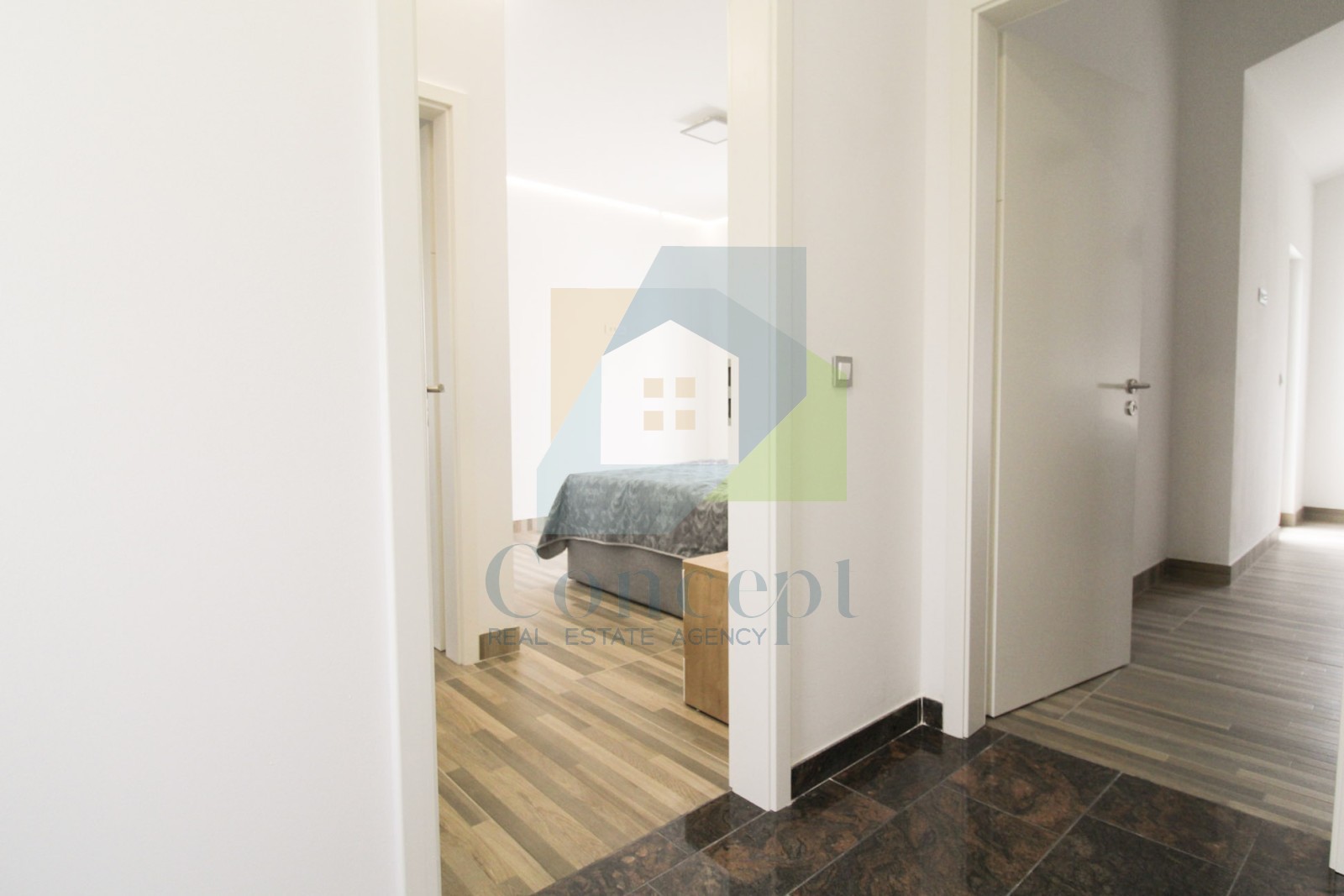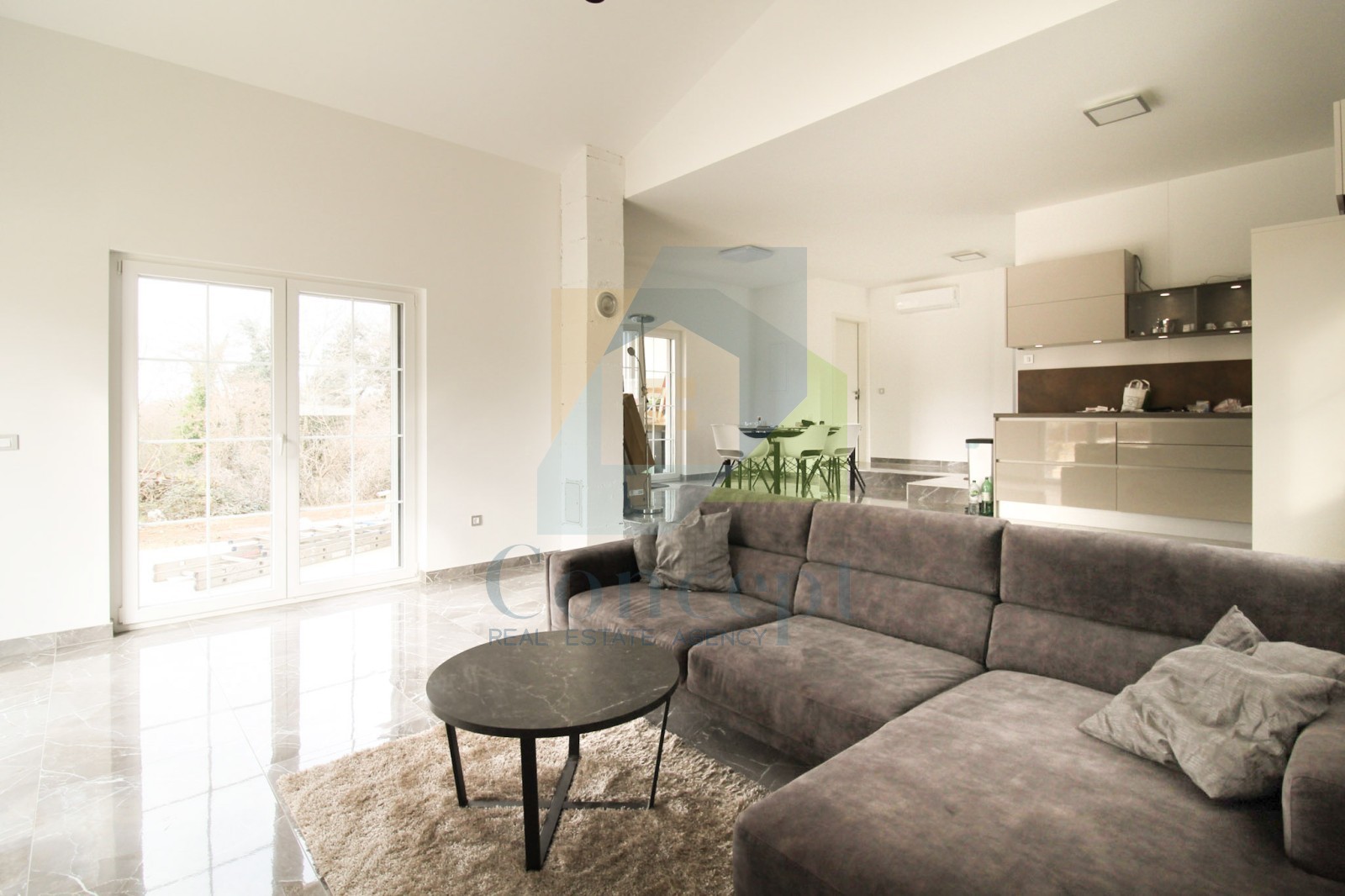 S skupno površino 149 m², razporejeno na dveh etažah, je prostor funkcionalen in prostoren. V pritličju se nahajajo kuhinja, jedilnica in dnevna soba v odprtem konceptu, prav tako WC za goste in spalnica z lastno kopalnico, ki je popolna za goste ali družinske člane.