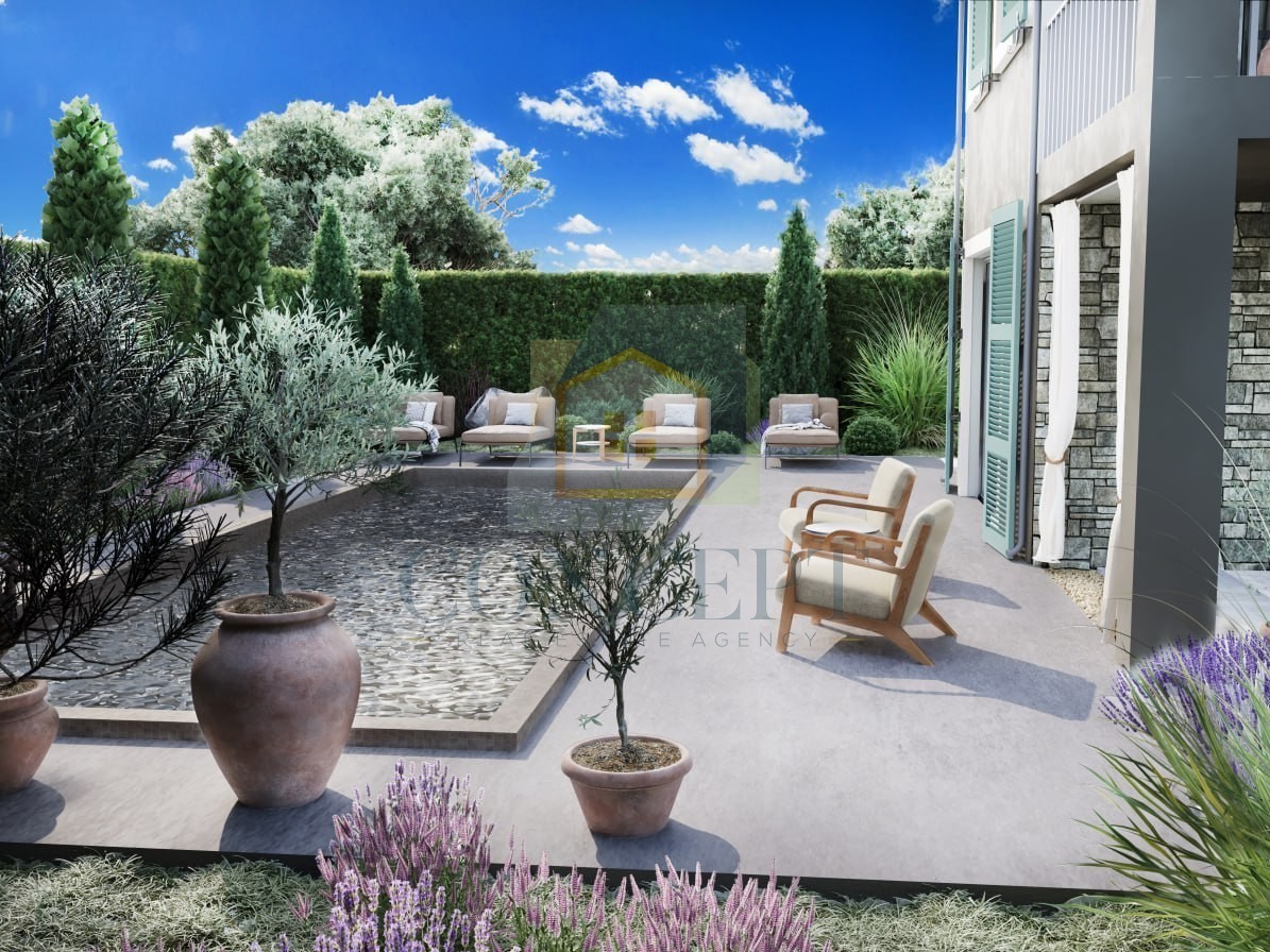 Na prodaj je pet hiš za oddih v ekskluzivnem kompleksu, ki bodo dokončane do konca leta 2025. Vsaka hiša ima približno 128 m² bivalne površine na dveh etažah, na parceli velikosti 510 m², s privatnim bazenom velikosti 27 m². Arhitektura združuje tradicionalni istrski slog z modernim dizajnom.