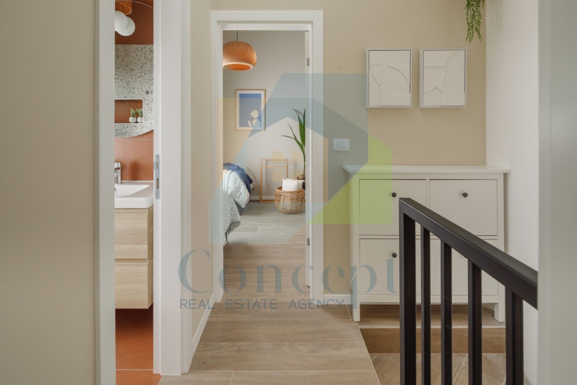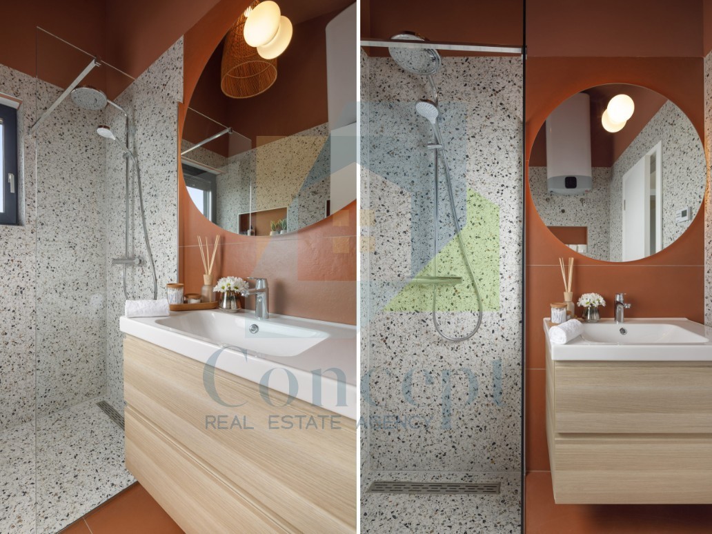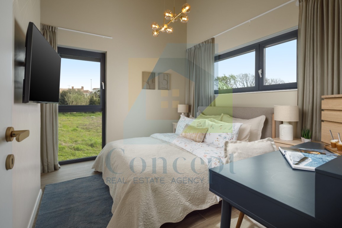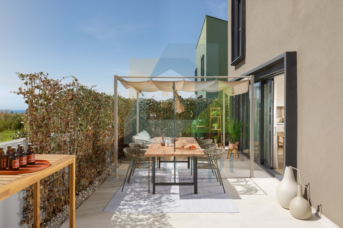 Na samo 900 m od morja v Poreču se nahaja zadnja hiša v nizu, ki nudi udoben in moden način življenja. Hiša obsega tri etaže s skupno bivalno površino 83 m². Zunanjost velikosti 137 m² je ograjena in zagotavlja zasebnost ter čudovit pogled na morje.